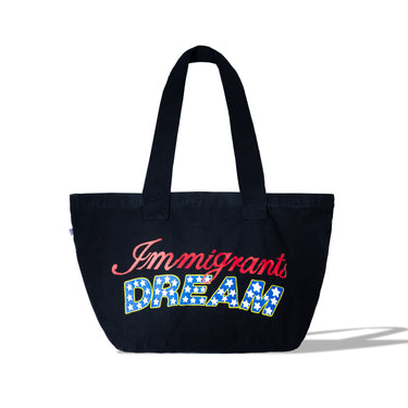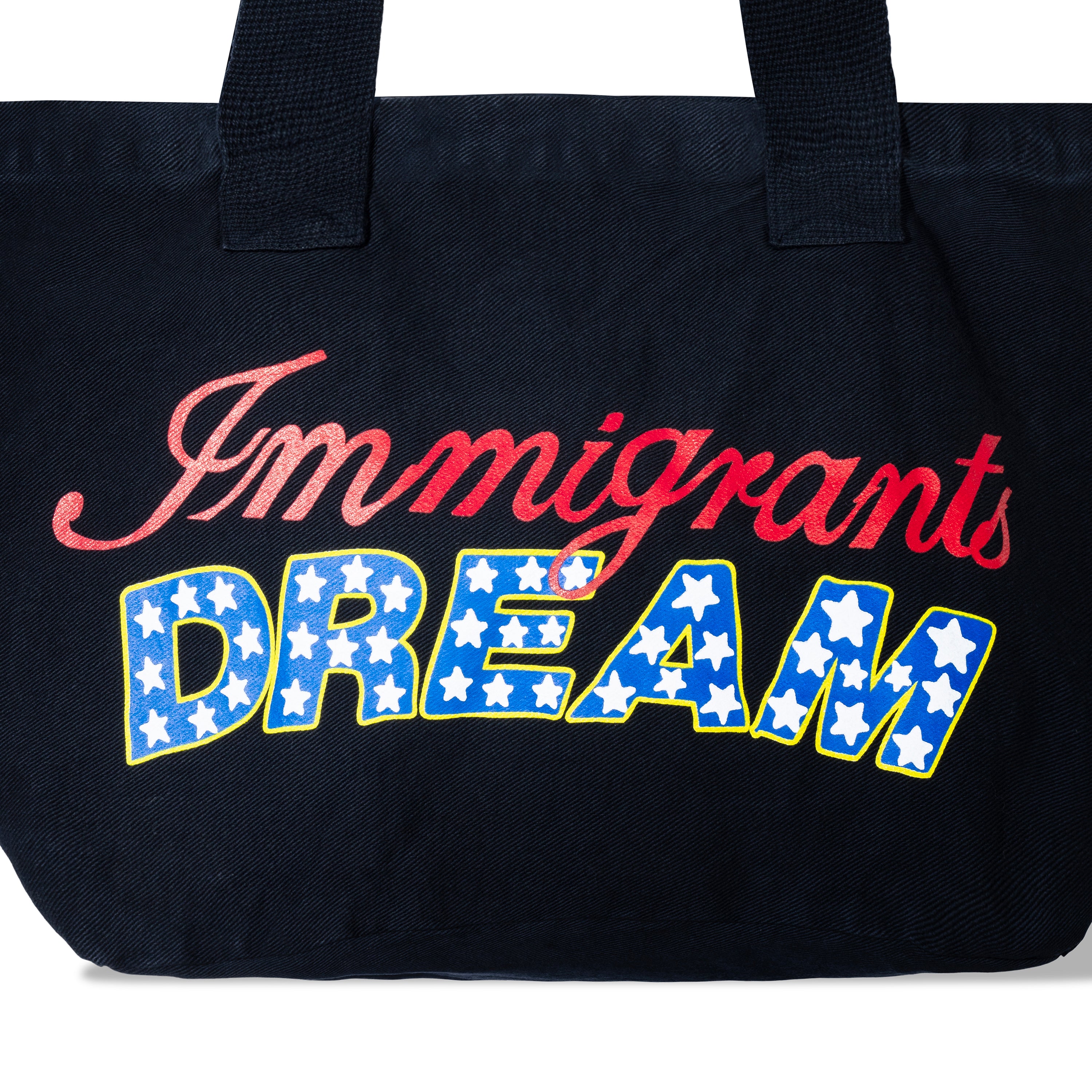 This Kids Of Immigrants unisex Immigrants Dream tote bag is crafted from durable 13.oz bull denim and displays a screen-printed logo.