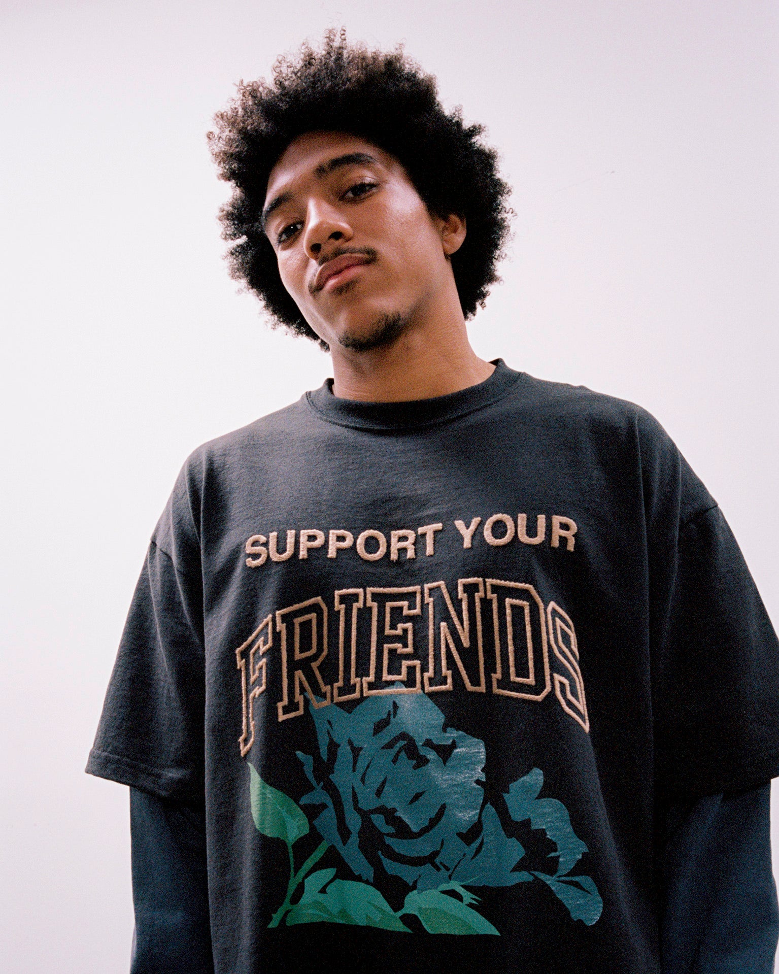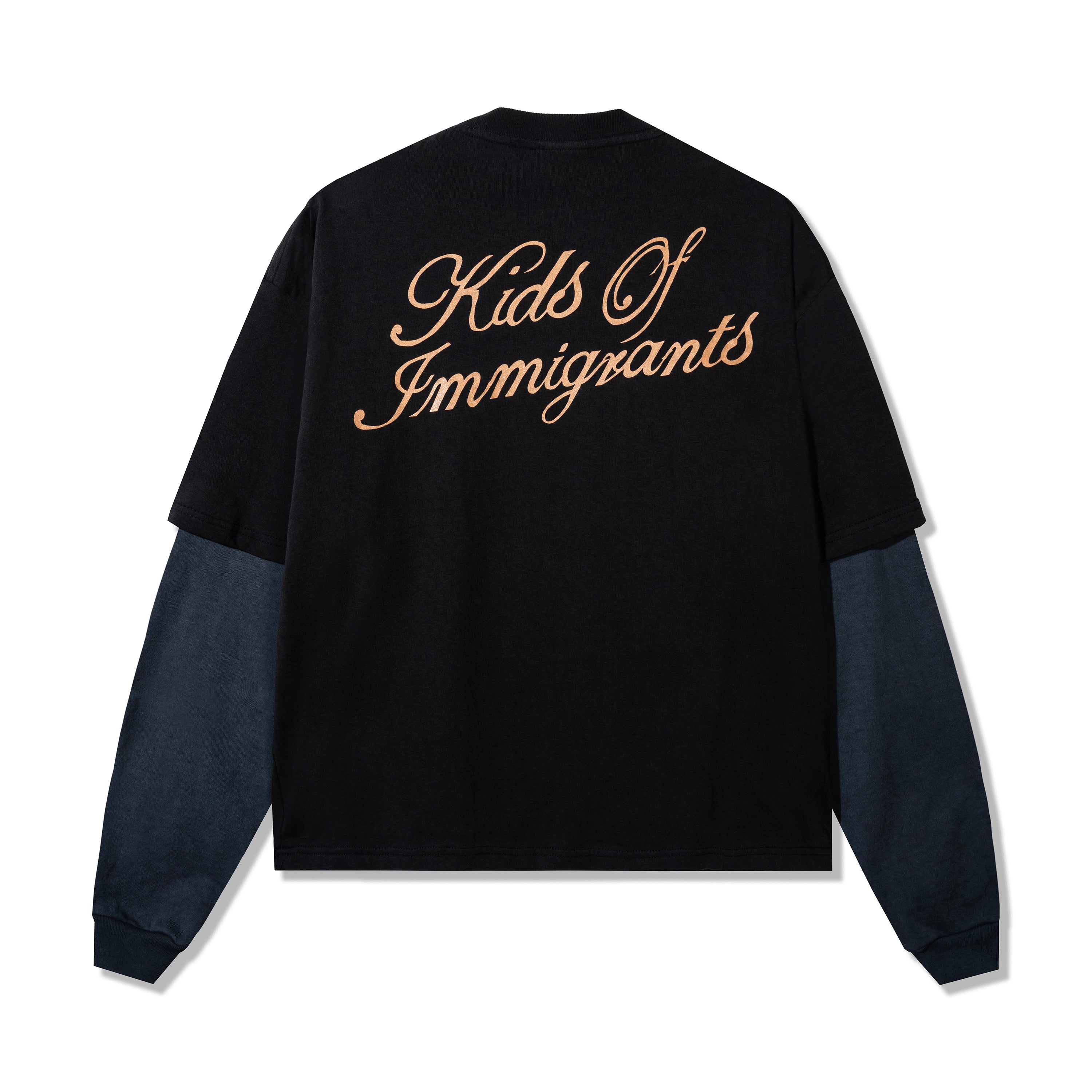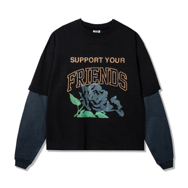 This unisex double-layered long-sleeve tee features a screen-printed front with our signature Flock overlay and a screen-printed back. This crewneck t-shirt features a slightly cropped length and a boxy, relaxed fit.