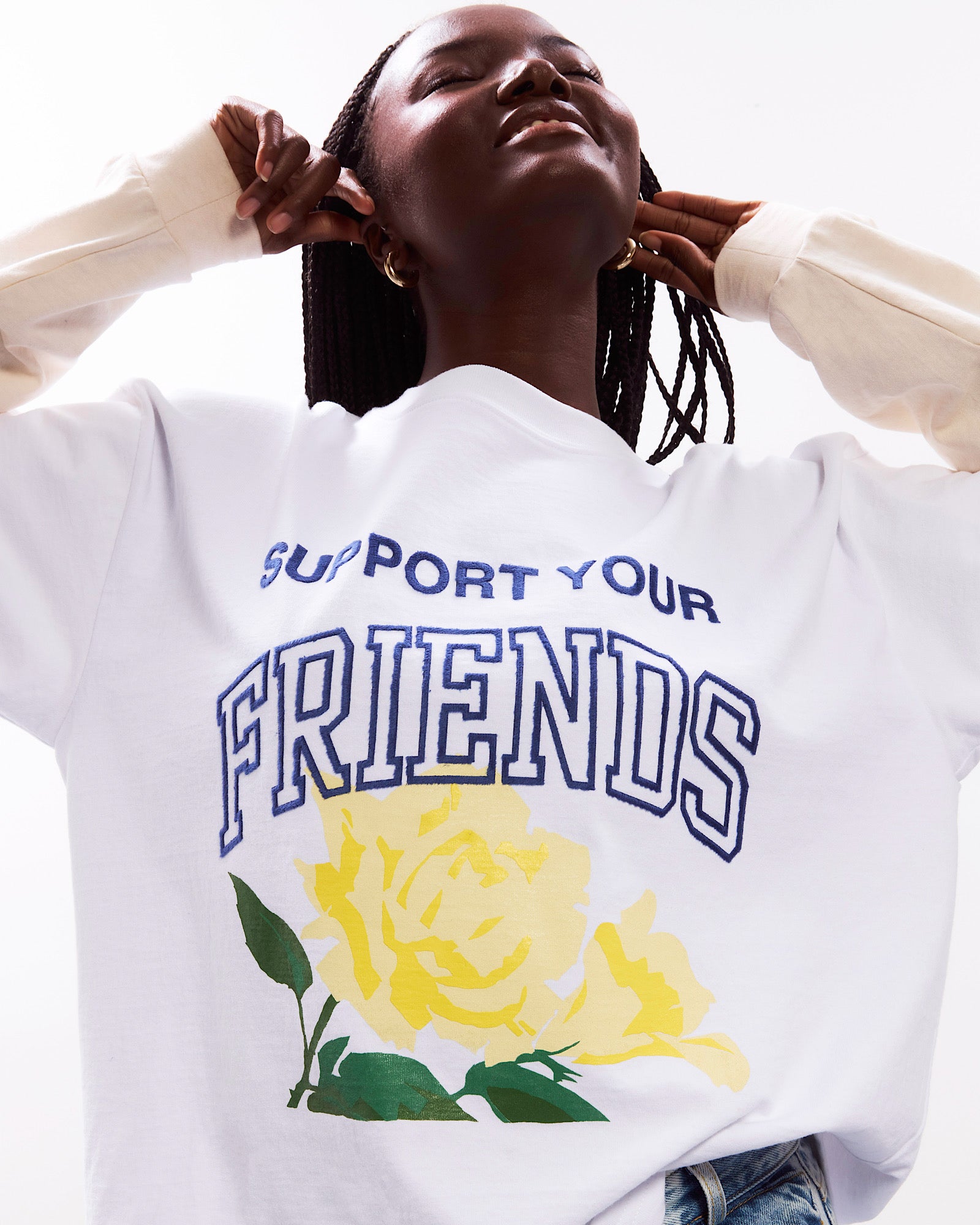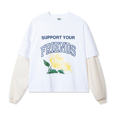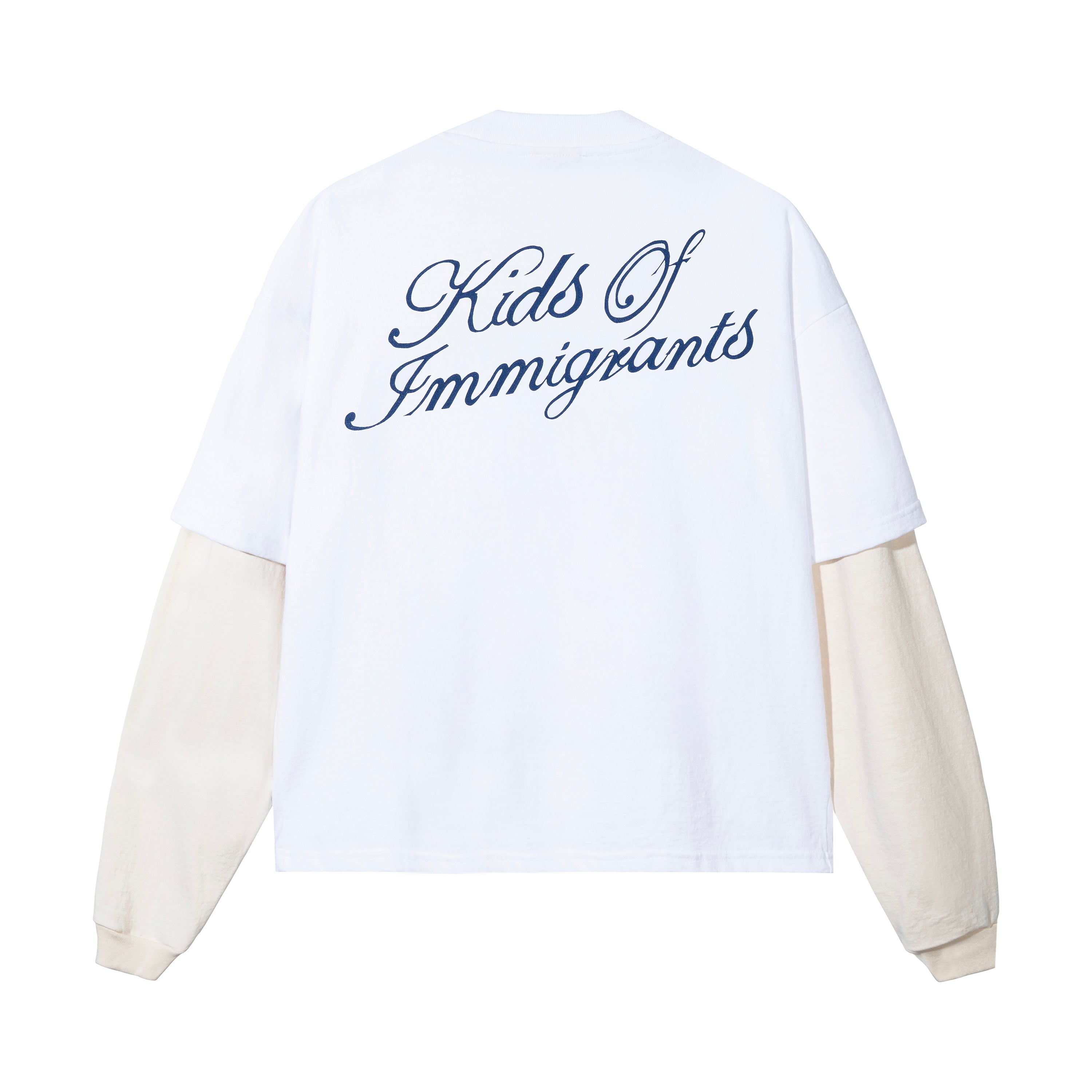 This unisex double-layered long-sleeve tee features a screen-printed front with our signature Flock overlay and a screen-printed back. This crewneck t-shirt features a slightly cropped length and a boxy, relaxed fit.