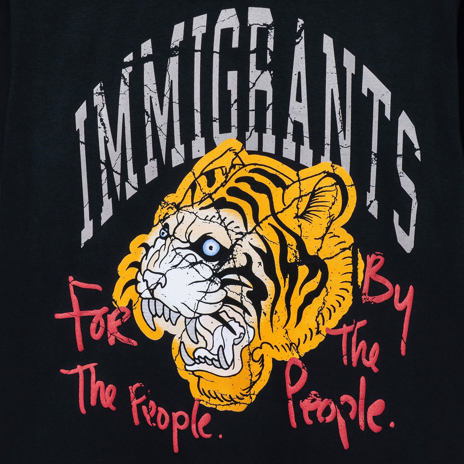This unisex long-sleeved T-shirt features a screen-printed design on the front and back, made from heavyweight 7.6 oz 100% combed cotton, and offers a boxy, relaxed fit.